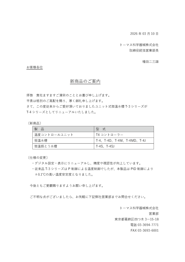 新商品(T-4シリーズ)のご案内